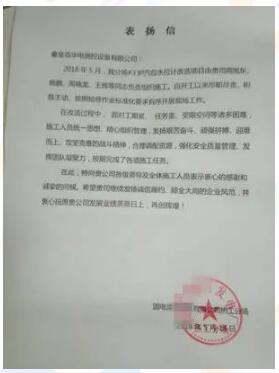 追求卓越,精益求精是每一個華電測控員工的行為準則。此次改造過程中,我方施工人員獲得了電廠的來信表揚。