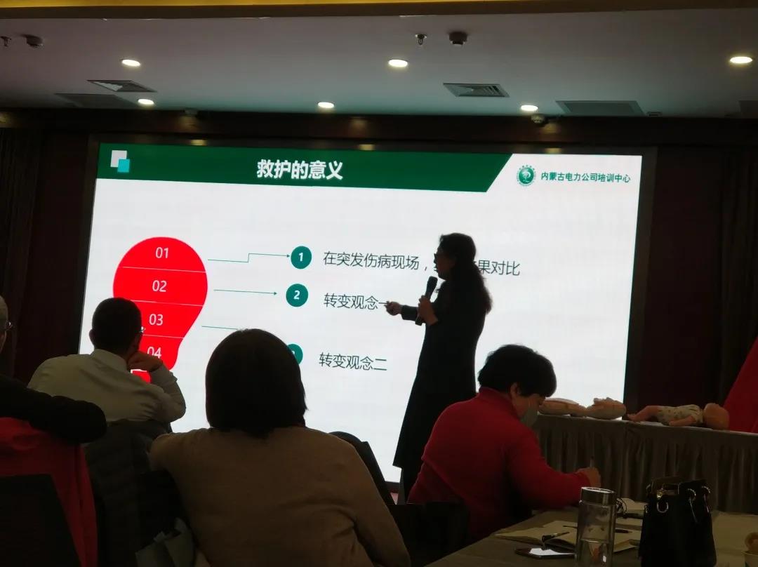 為有效普及和提高全員應急救援知識和自救互救能力,幫助大家準確掌握心肺復蘇等緊急醫療技能,為人們的生命安全和身體健康提供有力保障,2020年12月27日,華控集團2020年終總結暨培訓大會舉辦應急救護培訓,特邀中國紅十字會培訓師、電力培訓中心高級培訓師李佰玲老師主講。來自華控集團員工及家屬,以及社會各界人士200余人參加了此次培訓。