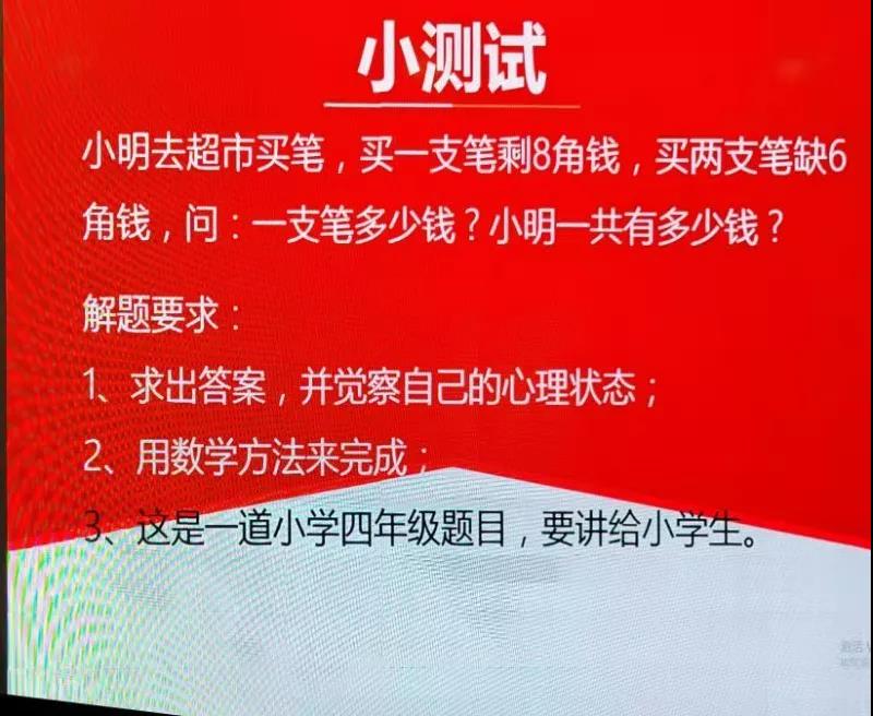 接下來是實戰環節,劉老師通過一道小學四年級數學題,讓大家思考解題思路,如何讓孩子學會解題?