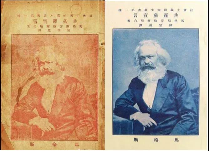 《共產黨宣言》全文譯稿完成后,陳望道應邀來到上海《星期評論》編輯部擔任編輯。他委托俞秀松將《共產黨宣言》全譯文交陳獨秀校閱。隨后陳獨秀又將《共產黨宣言》中文全譯文轉交李漢俊校閱,陳望道作最后修訂。1920年8月,經多方努力,《共產黨宣言》中文全譯本出版。這是國內第一個公開正式出版的《共產黨宣言》全譯本。初版1000冊,全部贈閱。該書長18厘米,寬12厘米,平裝,封面印有水紅色馬克思微側半身肖像,全書無扉頁,無序言,無目錄,內文共56頁,采用繁體字和新式標點。全書錯字、漏字達25處,如第一頁中“法國急進黨”誤為“法國急近黨”。由于排版疏忽,封面書名《共產黨宣言》錯印成了《共黨產宣言》,1920年9月又加印1000冊,封面書名更正為《共產黨宣言》,馬克思肖像的底色也變成藍色的了。書中正文只字未動,嚴格地說這只是一次重印,但封三的版權頁上仍印上“一千九百二十年九月再版”字樣。