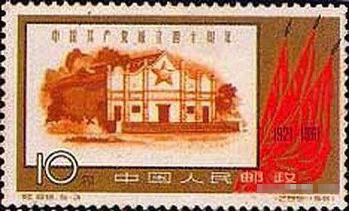 為紀念建黨40周年,1961年7月1日,郵政部門發行了紀念郵票 紀88 ,設計者為孫傳哲。全套共5枚,其中第3枚面值10分,為 中央大禮堂(瑞金),發行 400萬枚 。