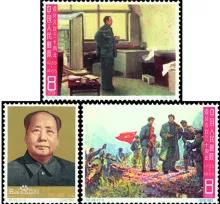 1965年1月31日,紀109《遵義會議三十周年》紀念郵票發行,全套共三枚,分別為“決戰前夕”、“毛主席像”、“婁山關大捷”。該套郵票第一枚“決戰前夕”,表現的是面對墻壁上的軍事地圖聚精會神謀劃作戰方案的毛澤東,栩栩如生地展現出毛澤東運籌帷幄、巧捕戰機,指揮紅軍贏得婁山關大捷、四渡赤水等軍事勝利的光輝形象。圖案是以著名畫家高虹的同名畫作為主圖的。第二枚郵票的圖案,采用的是20世紀60年代后國內廣為發行的毛澤東標準像。第三枚“婁山關大捷”表現的是毛澤東等在1935年2月底登臨婁山關指揮作戰的情景。郵票畫面上,婁山萬峰插天,紅軍戰士急速前進,毛澤東站在高地凝視遠方。該套郵票均標有“遵義會議三十周年1935―1965”字樣。其中(351)/8分/決戰前夕/1000萬枚;(352)/8分/毛主席像/1000萬枚(353)/8分/婁山關大捷/1000萬枚。發行數量:1000萬套。全套面值:0.24元。設計者:劉碩仁。