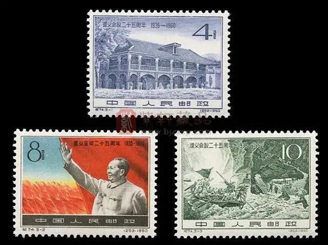 1960年1月25日,當時的郵電部發行了紀74《遵義會議二十五周年》紀念郵票一套,全套三枚,圖案分別為“遵義會議會址”、“在毛澤東旗幟下永遠勝利地前進”、“強渡金沙江”。3枚郵票上均標有“遵義會議二十五周年1935―1960”字樣。