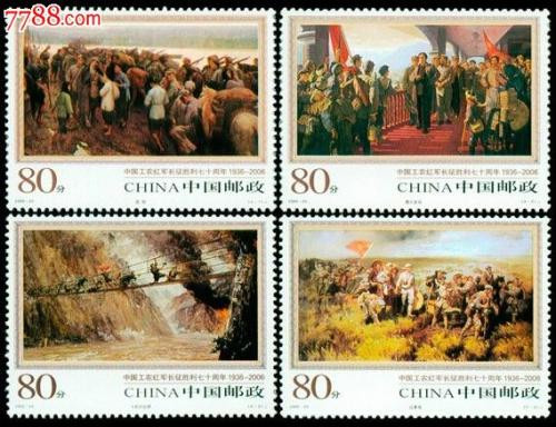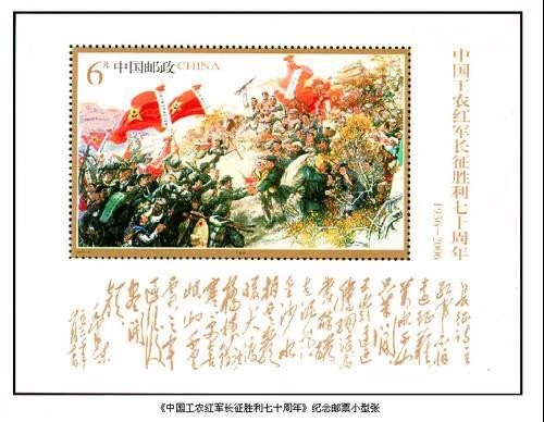 國家郵政局于2006年10月22日發行了《中國工農紅軍長征勝利七十周年》紀念郵票1套4枚,小型張1枚。志號:2006-25。全套面值:3.20元。設 計 者:郝旭東。