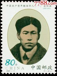 為紀念在解放全中國的革命事業中嘔心瀝血,英勇戰斗,壯烈犧牲的中國共產黨的無數英雄兒女,中國郵政在中國共產黨建黨80周年之際,發行了《中國共產黨早期領導人(一)》紀念郵票1套5枚,表達對革命先輩們的崇高敬仰。這是2001年6月28日發行的紀念郵票,設計者是王虎鳴。