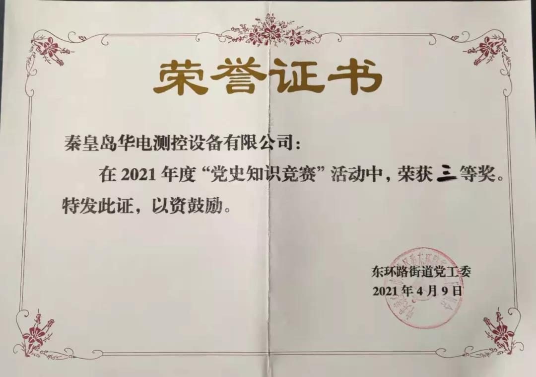 為慶祝中國共產(chǎn)黨成立100周年,加深黨員對黨的歷史、黨的知識、黨的理論和路線方針的認(rèn)識,激發(fā)黨員的愛黨愛國熱情,堅定走中國特色社會主義道路的信心,2021年4月9日,東環(huán)路街道黨工委舉辦了黨史知識競賽活動,華電測控黨支部作為非公企業(yè)代表參加了此次競賽。