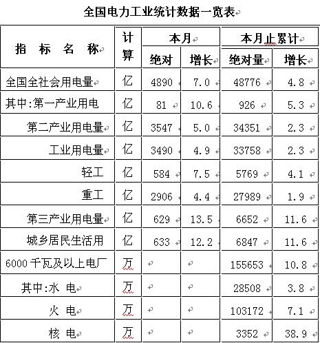 全國(guó)電力工業(yè)統(tǒng)計(jì)數(shù)據(jù)一覽表