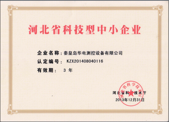 公司被河北省科學技術廳認定為“河北省科技型中小企業”,認定編號為:KZX201408040116,并頒發證書。