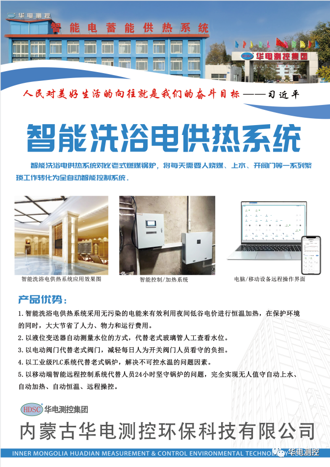 2022年4月1日,由內蒙古華電測控環保科技有限公司研究和設計的智能洗浴電供熱系統項目在呼和浩特市某洗浴店完成竣工驗收!項目的順利完成,對內蒙古公司在智能控制系統方向的研究和開發有很大意義,為內蒙古公司供熱產品在市場的加快推廣起到了積極作用。