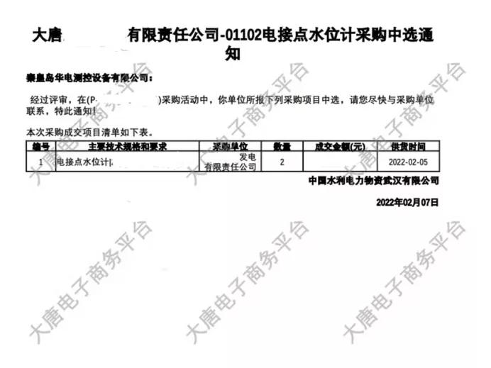 2月7日,春節過后上班第一天,公司收到了來自大唐某電廠發來的中標喜訊,我公司HDSC系列電接點水位計成功中標,公司迎來了開門紅,開啟了公司虎年新篇章!
