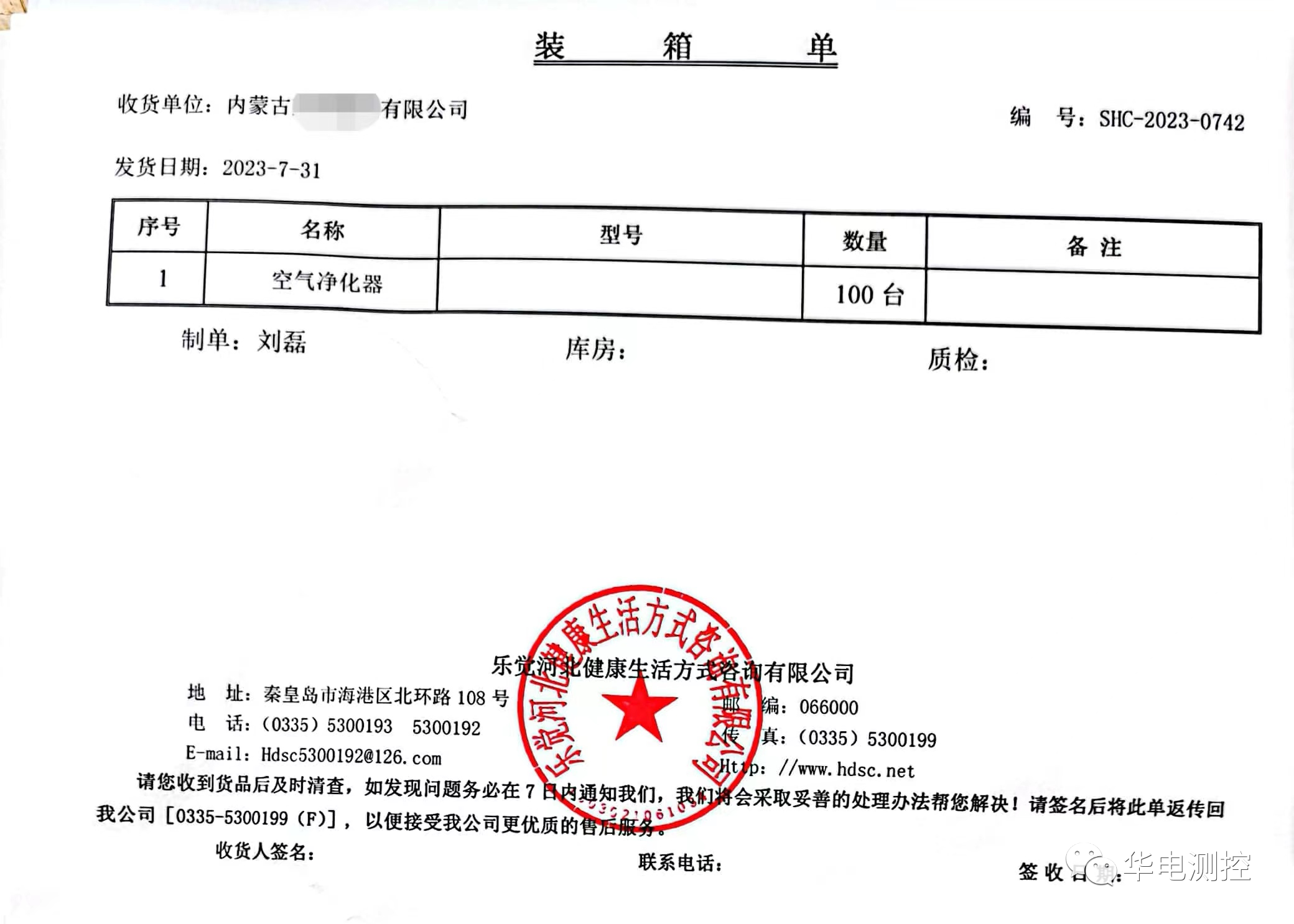 內蒙古某公司訂購春旭空氣凈化器100臺!