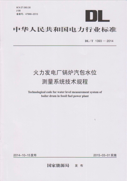 近日,公司參與編制的《火力發電廠鍋爐汽包水位測量技術規程》電力行業標準(標準編號DL/T 1393-2014)正式出版發行。此行業標準由國家能源局于2014年第11號公告發布。該標準規定了火力發電廠鍋爐汽包水位測量技術的基本要求及內容,條文清晰、系統性強、數據詳實,為規范火力發電廠鍋爐汽包水位測量技術提供了依據,有助于提高火力發電廠生產的安全性。