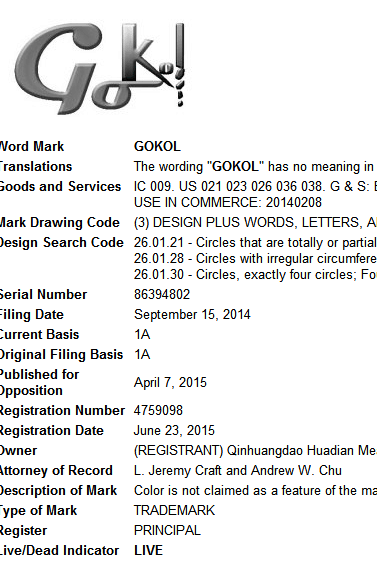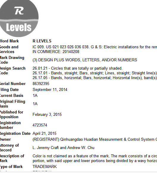 為了開拓美國市場,將公司產品盡快銷往美國,2014年9月,公司正式將鍋爐汽包水位測量與保護系統(R-Levels)和煤倉綜合管理系統(Gokol)兩個商標向美國商標局提交正式申請注冊文件,經美國商標局嚴謹審核認證,近日已經獲美國商標局的正式注冊。