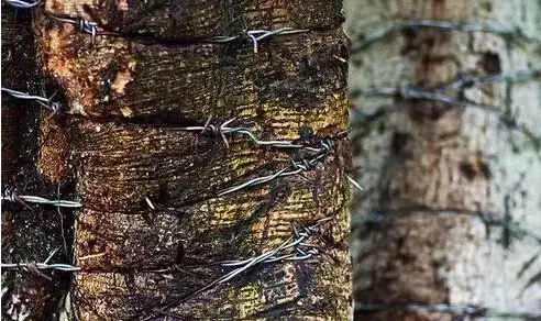 有一年,當(dāng)?shù)匕l(fā)生了一種奇怪的植物真菌疫病,方圓幾十公里的榆樹全部死亡,唯獨(dú)那顆箍了鐵圈的榆樹卻存活下來(lái)。