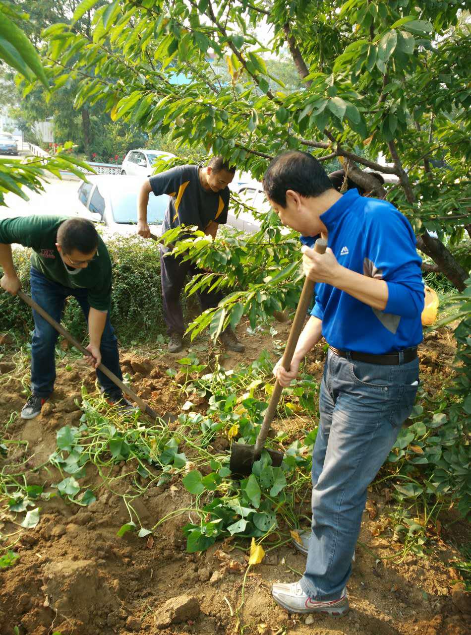 黨員同志們不怕苦,不怕臟,用鐵鍬等工具對生產車間門前的花壇翻整,并采摘了花壇中的白薯。炎炎烈日下,映著黨員們辛勤的汗水,一顆顆白薯顯得分外飽滿,也見證了黨員們的付出與收獲。同時,老黨員號召同志們發揚艱苦樸素的精神,將白薯秧進行采摘,作為憶苦思甜的晚飯。