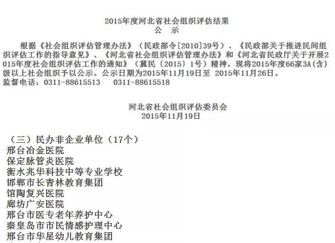 【企業(yè)要聞】秦皇島市市民情感護理中心榮獲2015年度河北省社會組織評估3A級單位