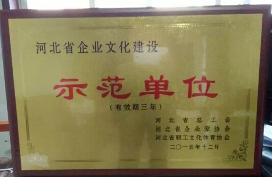 耕耘必有收獲,由河北省總工會、省企業家協會、省職工文化體育協會共同開展的選樹“河北省企業文化建設示范單位”活動,經過企業申報、相關部門審查推薦、評選辦初審、省相關部門復審把關、評審專家委員會審核評選等程序,我公司被評為“河北省企業文化建設示范單位”。公司總經理劉吉川先生被評為“河北省企業文化建設先進個人”。