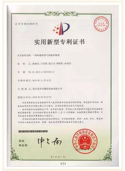 【企業(yè)要聞】公司申請的“一種環(huán)縫焊接氣體保護裝置”獲頒實用新型專利證書