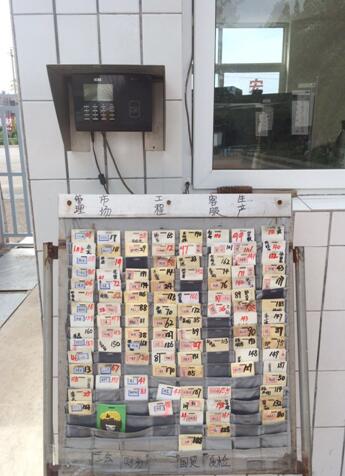 我們還是像往常一樣,按時(shí)上班,按時(shí)下班。當(dāng)大家出門打卡的時(shí)候看到了門口卡機(jī)下面的卡都眼前一亮,由于長(zhǎng)時(shí)間的循環(huán)利用,每張卡都有不同程度的損壞,由于風(fēng)吹日曬雨淋,卡上面的名字和號(hào)碼也已經(jīng)看不清楚,這樣的卡一直讓我們很苦惱,找不到自己的卡,耽誤好多時(shí)間。這些點(diǎn)點(diǎn)滴滴,被管理部看在了眼里,他們放下手里其他的工作,把上百?gòu)埖目没厝ィ匦抡澈茫缓髮懮锨逦拿趾吞?hào)碼,封上透明膠防止脫落,并且用紅黑倆種顏色正反面標(biāo)注,紅色代表在公司,黑色表示不在公司。
