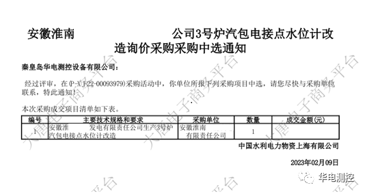 華電測控成功中選國能江西某公司#1、#2、#4爐汽包電接點水位計換型采購項目” 2023-02-21春回大地,萬物復蘇。在這個生機勃勃的時節,華電測控全體員工以飽滿的狀態、高漲的熱情和十足的干勁兒,迎來了一個又一個捷報!2月21日,我們的專利產品高精度取樣電極傳感器成功中More